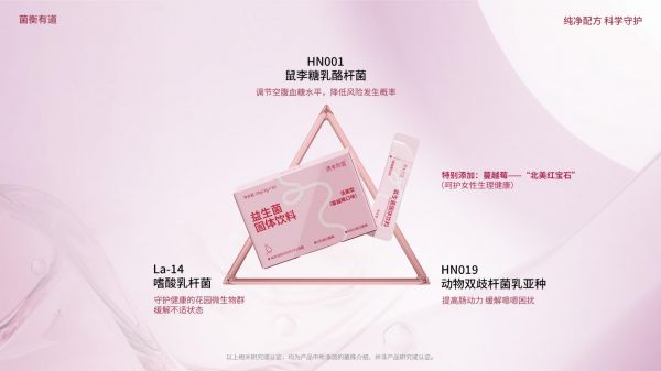 女性专属配方(小粉条)针对女性生理特点进行特别设计,关注女性特定健康领域的微生态平衡,孕期及哺乳期女性也可安心使用。