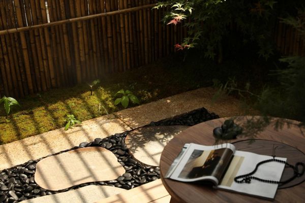 庭院我们也进行了设计,踏入庭院,脚下是错落有致的汀布石,巧妙的穿梭于枯山水之间,每一步都是行走的艺术,更是心灵与自然对话的桥梁,行走间忘却尘喧,回归内心的平静。