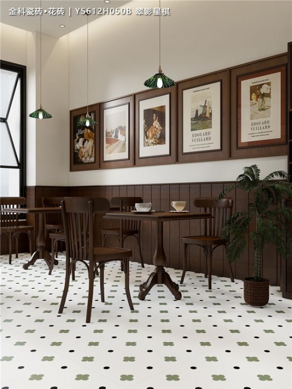 在餐厅或厨房铺开,与深木色家具、复古吊灯、装饰画搭配