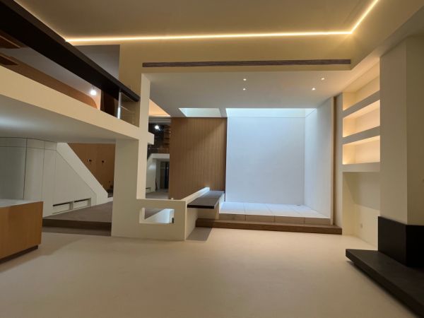 ▲客厅地面:魔术师岩板-极地白 / 地台地面:一品白