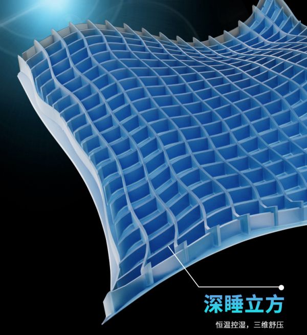 除了面料的抗菌防螨,填充层亦同样注重健康环保与透气性能,填充层创新融入PULNASE优乳棉材质,它提取自天然玉米纤维,从原料源头规避化学有害物质残留,安全环保属性拉满,为孕妇、儿童等敏感人群提供更安心的睡眠守护。特殊的六面透气结构,相较于传统平面透气材质,排湿散热速度大幅提升,能快速疏导床垫内部积聚的湿气与热量,避免夜间因体温升高导致的闷热出汗问题,让身体始终保持清爽体感,为深度睡眠筑牢舒适基础。