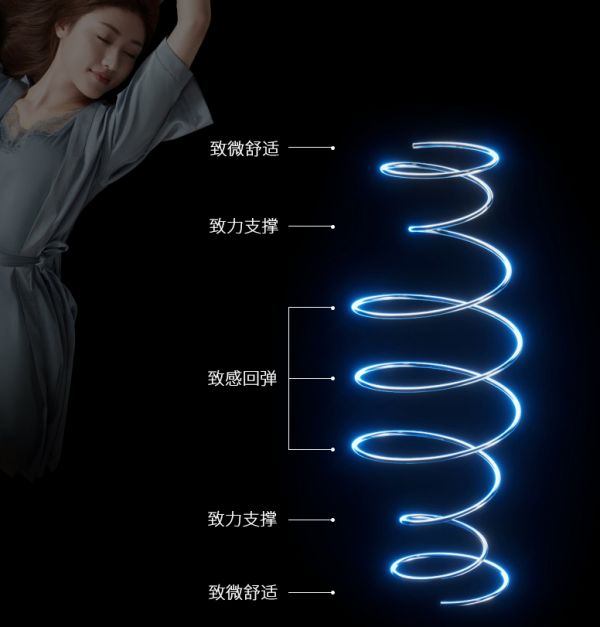 穗宝床垫的核心弹簧系统更具巧思,采用双灵敏源陀螺回旋设计,端部至中部呈现先收窄再舒展的陀螺回旋形态,一举覆盖舒适承托、弹性回弹、稳固支撑三大睡感维度。睡感层层递进、步步深入,助力身体持续维持循环深睡状态,让深睡时长有效延长,真正实现躺下即放松,入睡即深睡。