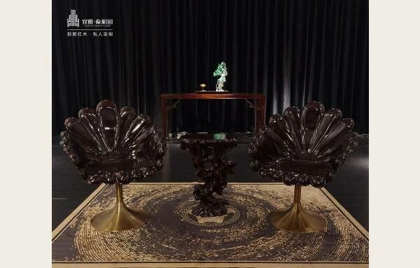 泰和园主打小叶紫檀家具私人定制,运用 “丝翎檀雕” 技法,《梅兰竹菊》系列尽显艺术品位。