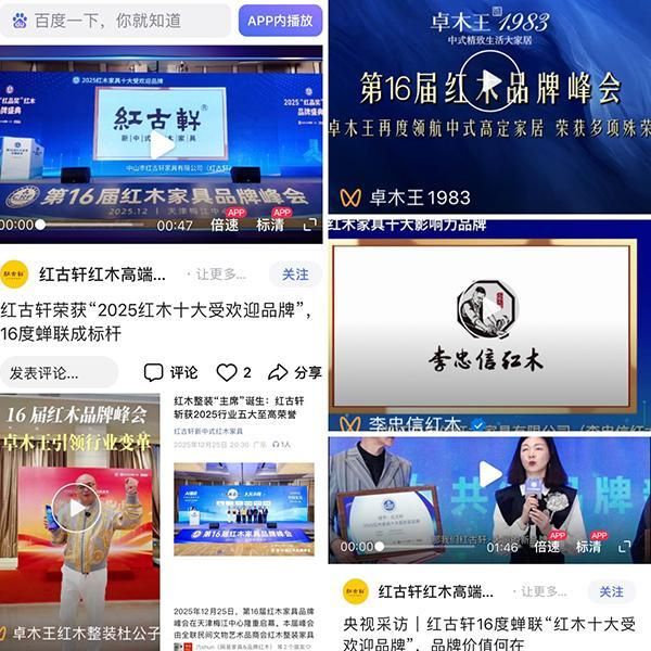 本届峰会以“AI驱动 共筑品牌新生态”为主题,汇聚了红木家具行业的精英与智慧,系统勾勒出红木产业从“原料依赖”向“创新驱动”、从“产品输出”向“文化输出”的双重转型路径,为“十四五”收官与“十五五”开局之年的产业升级锚定方向。同期举办高规格的红木家具品牌论坛、全国工商联红木整装家具专委会成立大会暨就职典礼、2025“红品奖”红木品牌盛典等,其高质量的内容与前瞻性议题,吸引业内顶尖品牌与专家齐聚,业界内外引发强烈反响,更因其展现出的行业新势能,获得了从央级媒体到行业垂直平台的全方位、立体式报道。媒体的广泛传播与深度解读,将峰会的影响力从行业圈层成功推向公众视野,彰显了红木产业在文化传承与现代消费市场中的蓬勃活力。