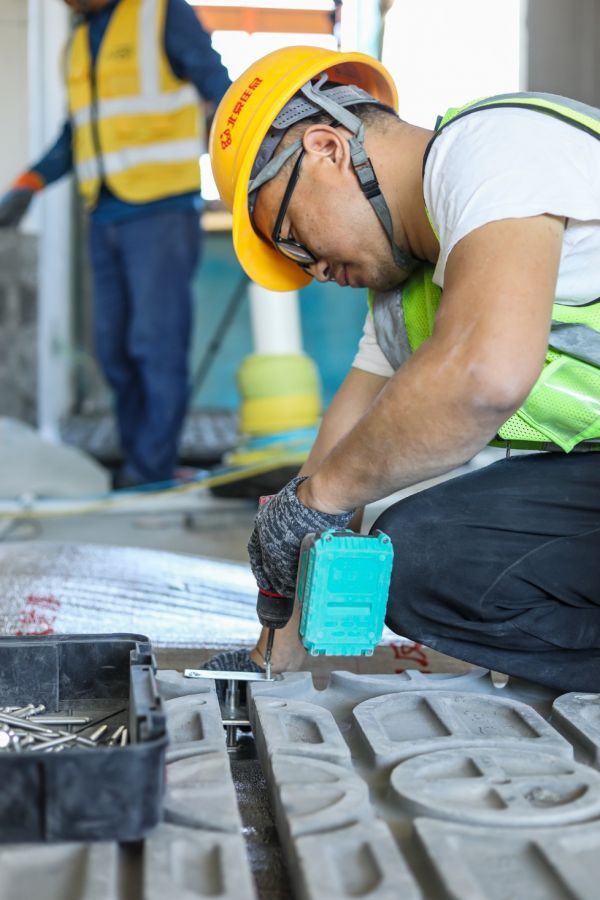 基层清理:对施工地面进行全面清理,确保无杂物、无凸起,为后续施工奠定平整基础; 反射膜铺设:在清理后的地面满铺2mm反射膜,提升地暖系统热效率; 模块组装:反射膜铺设完毕后,安装架空模块的上调平配件与四角固定配件。所有模块均配备上调平结构,可通过调节模块上方螺丝,精准把控地面高度,适配不同区域施工需求; 地暖管铺设:模块组装完成后,将地暖管直接嵌入模块预设的O型凹槽内。该设计无需额外固定,既能避免管道回弹移位,又能保证地暖管铺设后管面低于模块平面约1毫米,不影响后续硅酸钙板铺装平整度; 盖板铺装:地暖管铺设完毕后,在模块高点均匀打设结构胶,随后铺装硅酸钙板,强化盖板与模块连接稳定性; 工序移交:硅酸钙板铺装完成后,地面工程即可移交精装团队,开展瓷砖铺贴、木地板铺装等后续工序。全流程质量管控:筑牢工程品质防线
