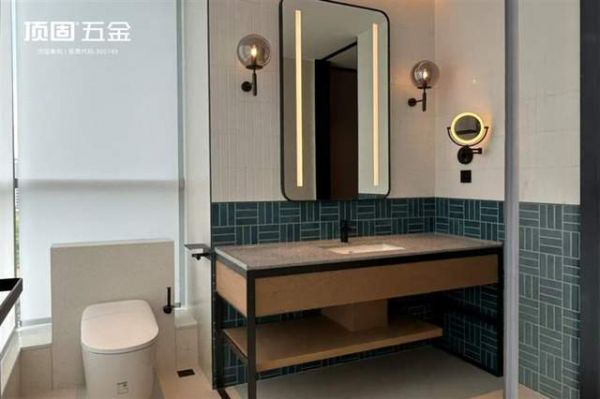 在高端酒店中,卫浴空间对五金的防水性能、耐腐蚀度及人性化设计往往有更高要求。顶固五金为此配备了不锈钢浴室拉手、T型/180度不锈钢浴室玻璃合页,确保淋浴房玻璃门的稳固安全与流畅开合;隐形防臭地漏在实现快速排水的同时兼顾了美观与卫生;而LED化妆镜、厕纸架、浴缸扶手等产品,则通过人性化的设计与精良的做工,于细微处提升使用便利性与舒适感。