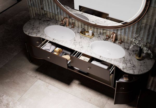 在设计层面,乾妃不锈钢浴室柜深度洞察当代家居审美趋势,将极简轻奢、东方美学与现代人居需求相融合,摒弃不锈钢材质的冰冷刻板印象,赋予产品温暖质感与艺术张力。新品系列不仅延续了极窄线条、一体化造型的流行趋势,更创新性地融入自然肌理与光影元素,通过色彩碰撞、材质拼接等设计手法,打造出兼具个性化与场景化的卫浴空间解决方案,让不锈钢卫浴家居从功能载体升级为生活美学的表达。