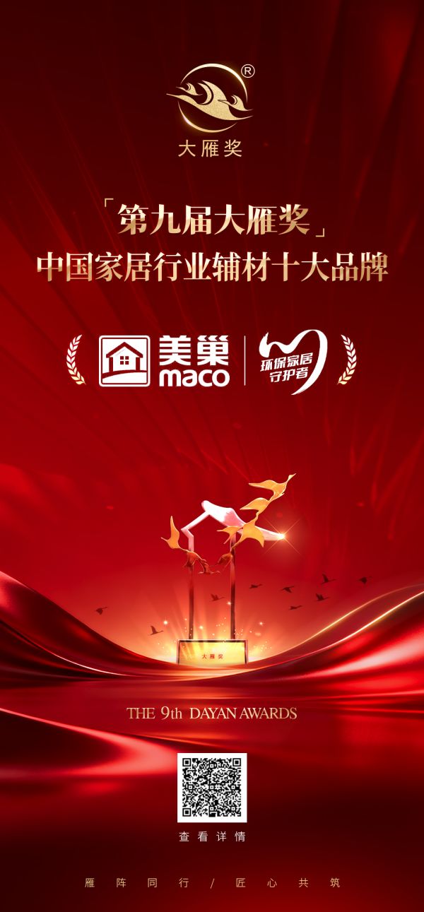 1月30日,「第九届大雁奖」获奖名单于云端发布会正式揭晓。美巢集团凭借其在辅材领域的卓卓越产品力、领先的品牌影响力与持续的市场引领表现,荣获“第九届大雁奖·中国家居行业辅材十大品牌”这一细分领域的权威殊荣。