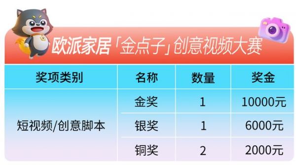 网址: 欧派×创意星球 | 2026欧派家居「金点子」创意视频大赛正式启动! http://www.jiajubaike.cn/newsview140288.html