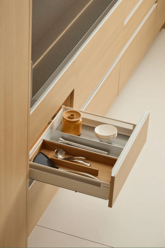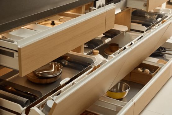 在现代化厨房中,大量零散的设备工具如何有序安置,已成为衡量厨房实用性与舒适度的关键。正是基于这一洞察,巴斯蒂姆利贝兰系列应运而生,以精湛工艺与人性化设计,重新定义厨房收纳美学。