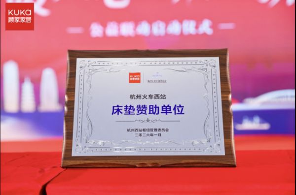 在授牌仪式环节,杭州西站枢纽管理委员会向顾家家居授予“杭州火车西站床垫赞助单位”荣誉牌。目前,顾家家居赞助的顾家床垫与枕头已全面部署于旅客休息室区域,并投入常态化使用。