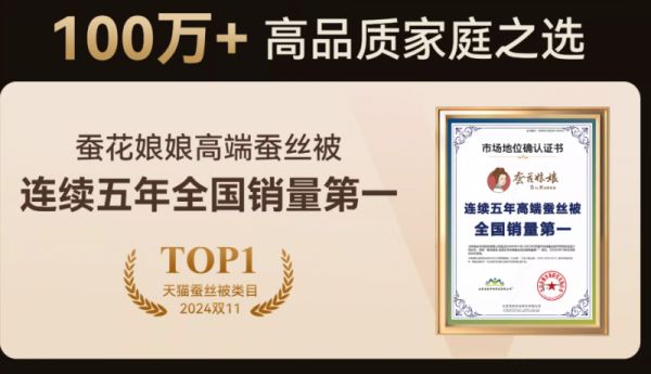 蚕丝被销量领先,蚕花娘娘品牌连续五年夺冠