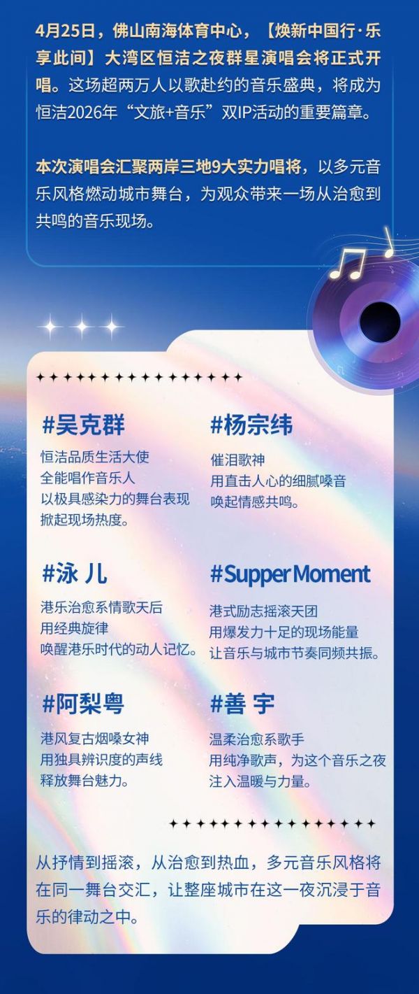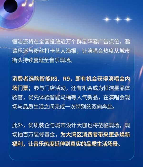 焕新中国行·乐享此间!大湾区恒洁之夜群星演唱会热力来袭。