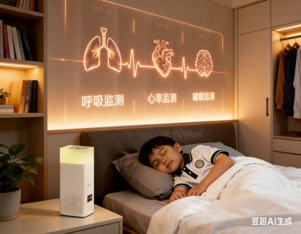 针对青少年手机依赖难题,马博士摒弃了穿戴设备或摄像头监控等传统方式。家长只需将监测仪置于床头,其内置的高精度生物雷达便能无感捕捉孩子的心率、呼吸及体动数据。