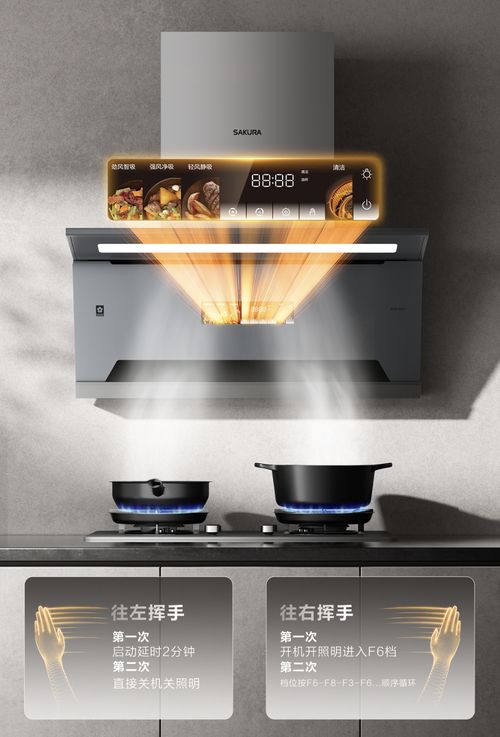 厨房不仅是功能空间,也是家居美学的重要组成。樱花吸油烟机Q801采用沉稳经典的高级灰配色,尽显精致质感。无论何种装修风格,都能自然融入,为家居空间增添一份优雅格调。365mm灵薄机身,齐平橱柜,视觉更加整洁统一,下厨时视野开阔,操作更加舒适,让身心尽情舒展。更有体感挥手智控功能,让科技真正服务于烹饪体验,无需触控面板,也能在挥手间完成吸油烟机的启停调档,不易沾染油污,也让操作更顺手、更洁净、更便利。