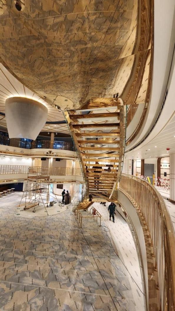 正是这种“自有工厂+自有团队”的模式,让善治楼梯在承接玻璃楼梯、钢结构楼梯等各类项目时游刃有余。例如在中国首艘大型邮轮“爱达魔都号”的楼梯工程中,善治楼梯凭借出色的技术实力完成了多曲面悬挑钢结构楼梯的制作安装;在天津华为旗舰店项目中,团队更是将钢构与玻璃完美融合,打造出极具现代感的悬挑楼梯,赢得了客户的高度赞誉。