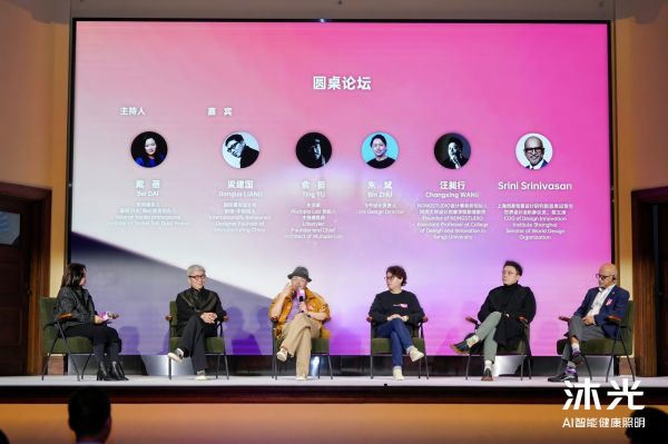 在圆桌论坛环节资深媒体人戴蓓作为主持人,与制造·中创始人梁建国,Wutopia Lab 创始人、城市微空间复兴计划联合创始人俞挺,NONGSTUDIO创始人、同济大学设计创意学院助理教授汪昶行,上海创新创意设计研究院首席运营官、世界设计组织参议员Srini Srinivasan等设计界大咖,及飞书设计负责人朱斌,围绕 “AI 时代灯光设计的创新与人文关怀” 展开圆桌讨论,为智能照明设计的未来方向提供了多元思路。与会嘉宾一致认为,在AI与健康需求双重驱动下,照明行业正迎来从“单品智能”到“空间互联”、从“基础照明”到“健康干预”的历史性转折。