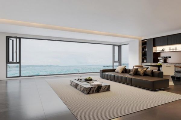 值得一提的是,新标大玻璃全景幕墙窗在大玻璃防护上做到极致严谨。除了依托幕墙级结构筑牢抗风压安全防线,更在玻璃配置上严格把控,选用信义制镜级超白玻原片,透光率高达 91.5%,自爆率低至 0.01%,从源头降低大玻璃自爆风险;同时可提供 PVB、SGP 等夹胶玻璃选项,搭配幕墙级龙骨支撑与防脱落五金件,实现结构安全+玻璃安全双重保障,让每一块大玻璃都能稳如幕墙,让消费者能够安心享受无界视野带来的空间美感与生活格调。