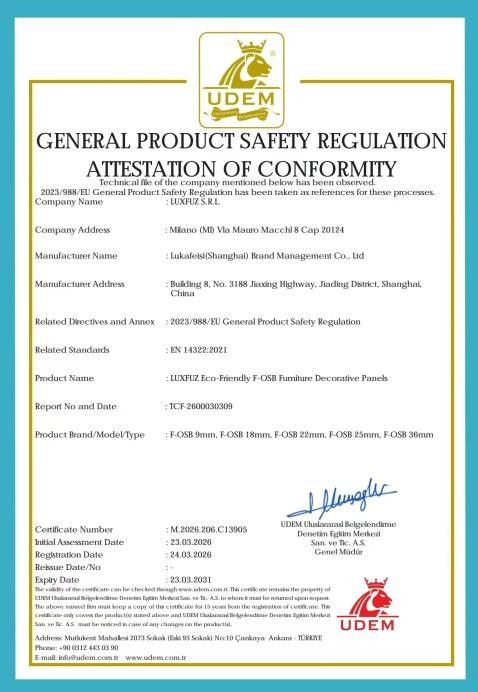 网址: 意大利隐奢级美学板材品牌LUXFUZ卢卡菲斯2026年欧盟CE认证 http://www.jiajubaike.cn/newsview143656.html