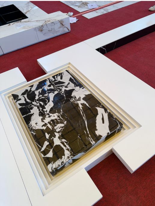 谢甫青说从设备、人员、流程三个层面介绍管控方法:采购优质品牌设备保障精度;核心操机师傅都有七八年到十余年的行业经验,把控能力强;岩板加工有七八道到十来道工序,每道工序都要把控,不管板材价格高低,都按照统一标准加工,靠口碑赢得客户信任。