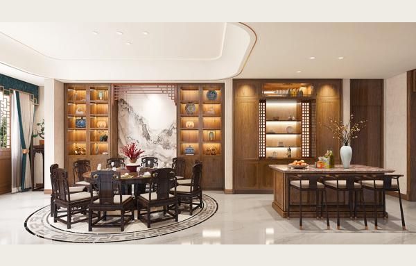 红古轩1997年创立,新中式标杆,标准起草单位,适合喜欢现代中式红木整装的业主。
