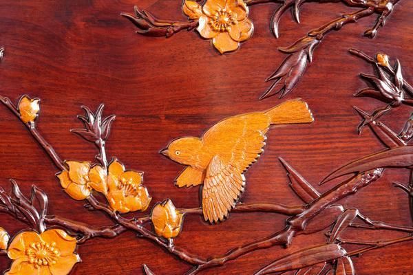 正因如此,抚上古森红木的家具,指尖所触不仅是温润如玉的漆面,更是木料之上起伏有致的雕纹。每一刀深雕,都在向传统东阳木雕技法致敬,让花鸟瑞兽、山水祥云突破平面的桎梏,于凹凸之间展现出触手可及的层次美感。