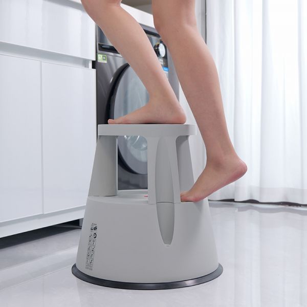 这款梯凳底部配备了万向脚轮,需要挪位置时,轻轻一踢,就能推着它到处走。当你站上去时,人体重量会触发滚轮自动缩回,让防滑橡胶圈牢牢扒住地面,不会出现“人站上去梯子却偷偷溜走”的可怕场面。这种设计既保证了站立时的纹丝不动,又避免了手提搬运的麻烦。而且简单的两步形式易于踩踏,每一步都有宽大的踏面,有娃家庭也能放心用。