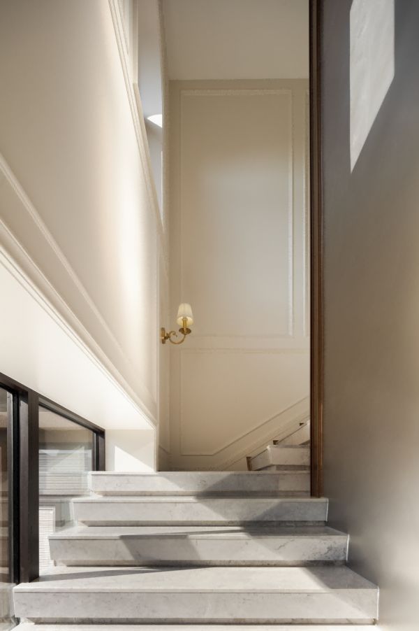 私宅设计的核心,从来不是设计师的自我表达,而是读懂居住者的内心诉求,在矛盾中找到恰到好处的平衡。这套云南别墅的业主夫妇均有留学经历,他们既向往西方生活的浪漫余韵,又不愿被传统法式的厚重所束缚;偏爱当代设计的简洁利落,又忌惮过度极简带来的空洞寡淡。这份细腻而微妙的诉求,彭景读懂了,也用设计给出了最妥帖的答案。