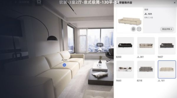 在家居行业,设计环节往往处于消费链路的前端。一个高效、精准的设计工具,不仅能够提升消费者体验,也能为后续的商品销售、施工落地创造更顺畅的衔接条件。居然设计家此前已推出的“方案即货架、模型即商品”模式,使得消费者在浏览设计方案时,可以直接了解方案中每一件商品的信息,从设计到购买的链路因此变得更加顺畅。