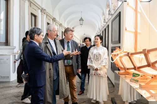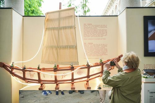 非遗之美绽放米兰 东方木作文明走向世界 米兰大学古老回廊内,人流如织,千年舟特别定制的艺术装置“汇”静置其中。以“舟”为核心意象,榫卯结构构建骨架,舟身之上,承载“纹艺觉醒”IP历年来花色纹样灵感,向世界呈现中国木文化的深厚底蕴与当代创新表达。 百川归海,谓之汇。汇,既是匠心之汇,以榫为骨、载纹载道,承载中国木作与非遗纹样的积淀;也是时空之汇,越山越海,通中意而互鉴,以艺术连接古今;更是文明之汇,合东西而同辉,让中国木文化在世界设计语境中与时代同频、与世界共鸣。