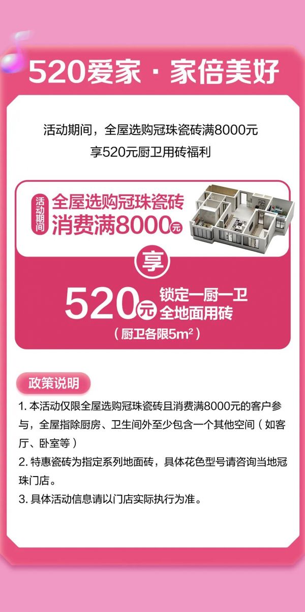 冠珠520爱家日火热开启!抖音团购券派发、颜值岩板买10送1,为爱筑家优惠选购