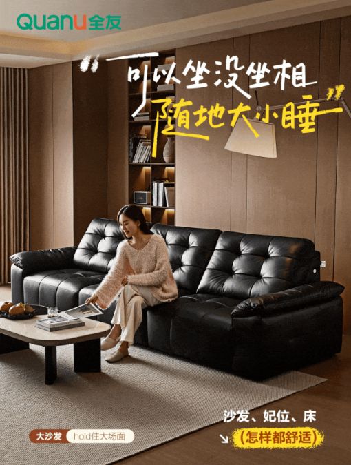 下班回家,最想做的事是什么?大概率是往沙发上一瘫,什么都不想。全友这款1号位功能沙发,就是冲着“让你瘫得更舒服”来的。