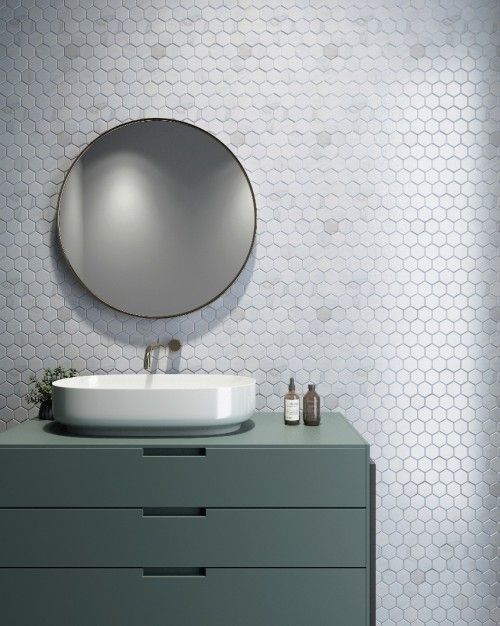 小六角风格的马赛克非常有灵性,因为它有灵动的形态,大面积使用也不会显得单调,再加上石材本身的色差和花纹变化,能够在简练的空间设计中突显出精致的审美。