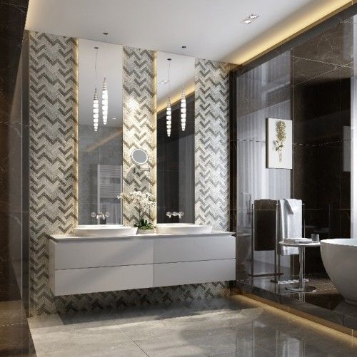 玻璃是马赛克最传统的材质,而且至今依然具有极强的生命力。结合现代几何设计,玻璃马赛克也可以非常时尚。