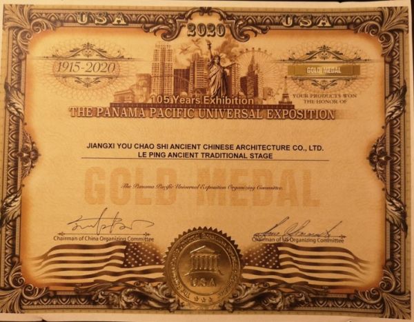 热烈祝贺“乐平古戏台”荣膺2020第105届美国巴拿马万国博