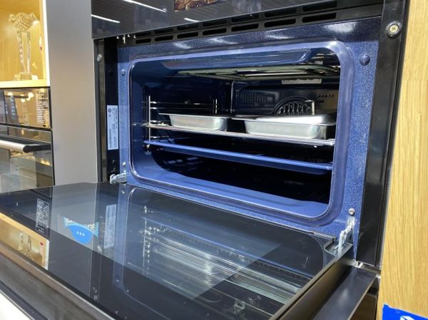 3件套里的另一件就是蒸烤一体机了,据店长介绍,这款蒸烤一体机可以通过智能手机远程操作,例如早上将鸡翅洗干净,放进蒸烤一体机,下班前估计到家的时间,用手机远程操控开机按钮,回到家刚好能吃上美味的食物。