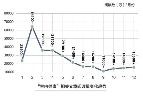 随着社会经济的快速发展,最近三四十年来,国人的生活发生了天翻地覆的变化,在家居消费领域,大众对居住环境的需求逐渐出现了从外在到内在、从显性到隐性的转变趋势——家不仅要大、有品位,更要实现健康、舒适的人居环境体验,健康成为美好生活新刚需。加之新冠疫情的刺激,去年互联网上对于“室内健康”相关话题的关注度猛增,全年阅读量近30亿,并在2月居家隔离期间达到峰值。