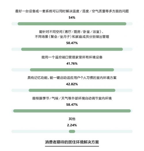 消费者究竟期待怎样的居住环境解决方案?能根据外部环境自动调节室内环境,一台设备或一套系统同时解决所有问题,能针对不同空间分别做出管理。调查结果显示,相比“头痛医头脚痛医脚”的补丁式设备组合,消费者在家居环境管理方面呼唤的是一种更智能化、一体化的管理系统,比如慧科技三恒系统。