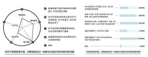 大众对室内健康的关注度正在消费端转化为不可忽视的购买欲——调查显示,空调、吸尘器、加湿器、空气净化器等多种健康单品渗透率已经过半,但健康类家电的消费升级仍在继续,消费者的关注点已不只是最基础的冷暖调节,而是进一步细分到了体感更丰富的湿度和空气质量管理,然而仅有1.76%的消费者表示他们尝试过的技术/方案效果完全解决了居住环境的问题。对于绝大多数消费者而言,常规的解决方案不仅效果有限,甚至带来了诸多“副作用”:比如空调在除湿的同时也拉低了温度,吹空调吹出“空调病”,房子越大要加载的设备数量越多难打理,诸多电器设备带来室内噪音等等。