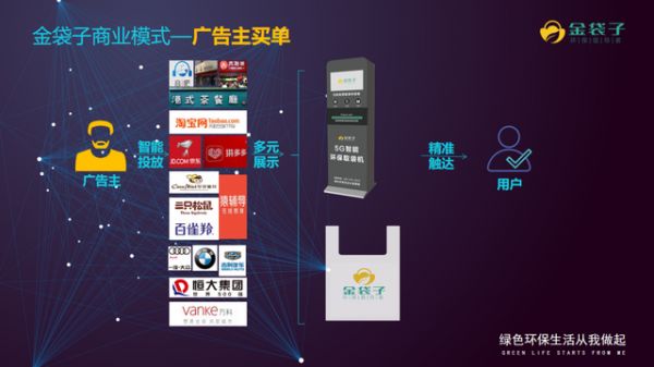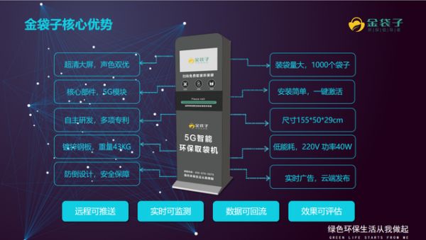 但是,作为一家专注于打造线下流量入口的互联网公司,金袋子旨在让免费便捷的、全降解的、生态环保的购物袋走入千家万户!通过自助取袋机的便捷性,金袋子重点选择超市、社区、便利店等场所,广泛宣传“白色污染”的危害性,宣传使用环保购物袋的重要意义,使广大市民树立环境保护意识,积极选用环保购物袋,大力营造限用塑料购物袋的良好氛围。同时,金袋子也借助“非接触式”智能取袋机,实现零接触自动取袋,让环保袋更洁净,让用户用得更放心。金袋子,立志成为环保行业倡导者,致力于成为国内领先的智能环保服务提供商,助力国家治理“白色污染”,为用户提供免费、全降解、便捷的智能取袋服务。