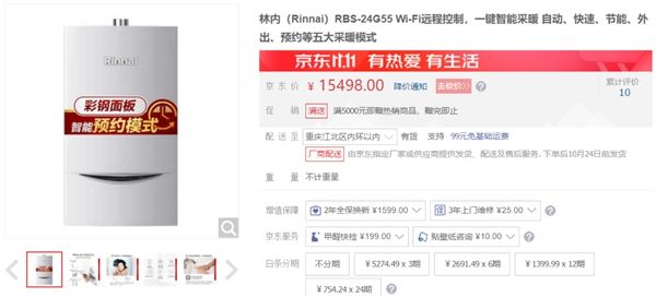 在重庆京东电器超级体验店G层壁挂炉专区我们看到,有博世、纳碧安、林内等多个品牌的壁挂炉产品可供选择。从外观看,每个品牌的产品无论造型设计或是外观颜色都很是时尚,完全颠覆了我们以前对于取暖设备外观不好看或者说缺乏设计感的担心。