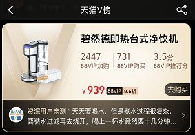 2021天猫V榜推荐大赏,千万88VIP的选择碧然德即热净水