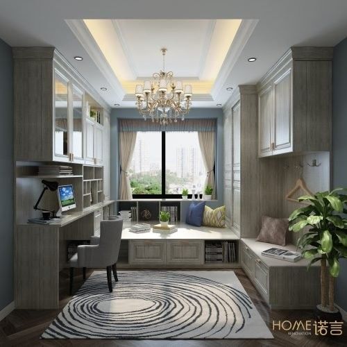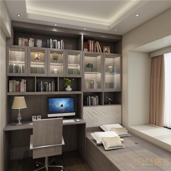 榻榻米的实用性比较强,既可以满足看书、休憩,又可以收纳,拥有多方面的使用功能。尤其是小户型最为合适,书房和榻榻米组合在一起,能够呈现办公兼休闲一体化的书房空间。