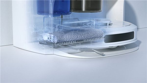 而基站配备的是深度清洁系统。当基站感应到机身污水盒满或清水用尽时,自动召回并将污水回收至污水桶,将清水注入清水盒。并对拖布进行二次深度清洁和风干,清洁度和风干度高达99%。保持了拖布的高度洁净。