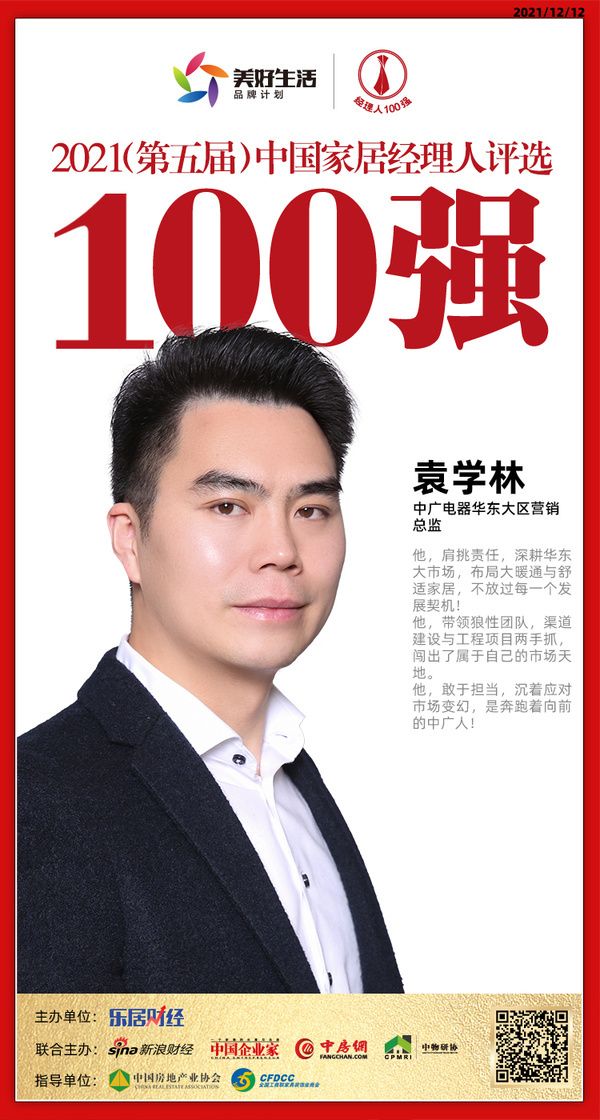 快讯:中广电器袁学林荣获“2021中国家居经理人100强”
