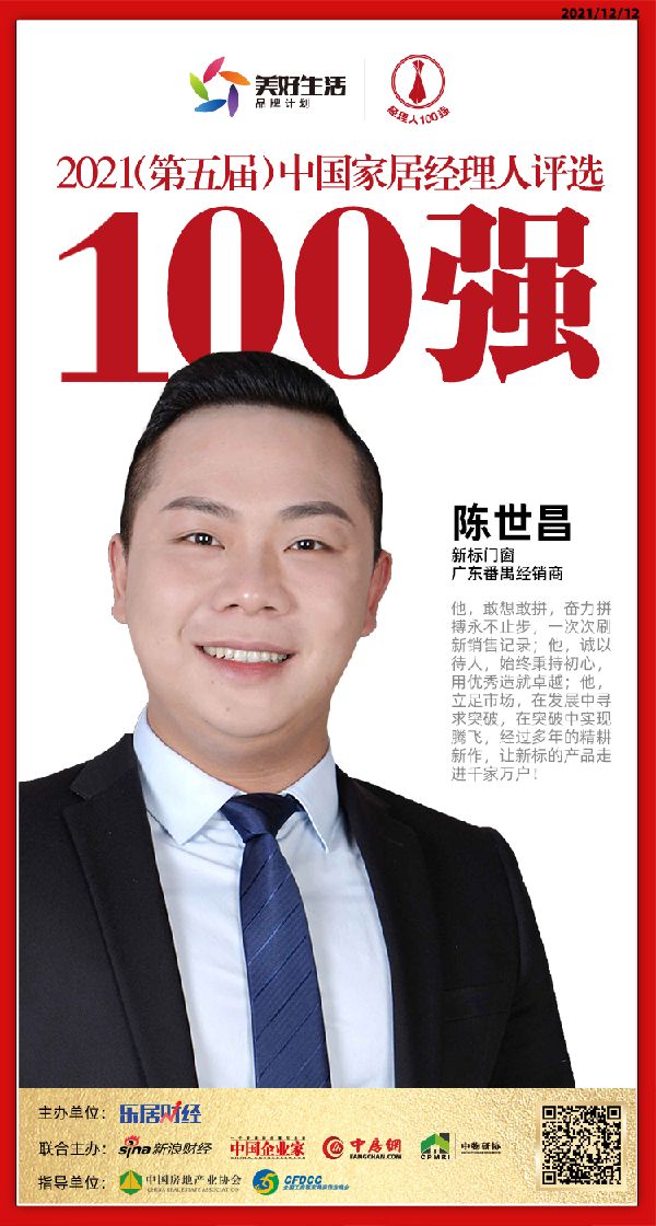 快讯:新标们穿陈世昌荣获“2021中国家居经理人100强”