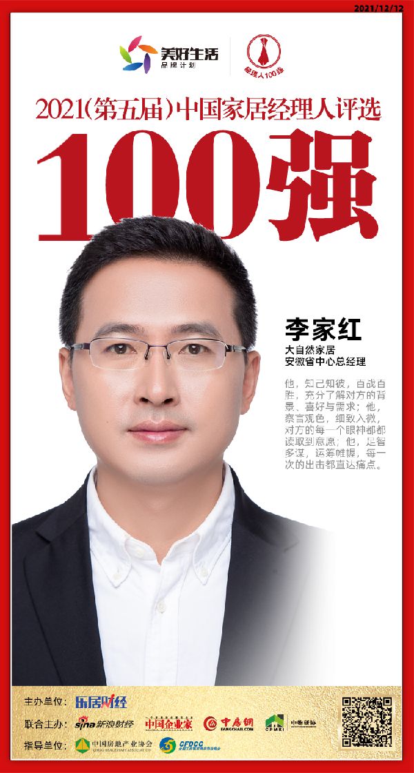 快讯:大自然家居安徽省中心总经理李家红获“2021中国家居经理人100强”