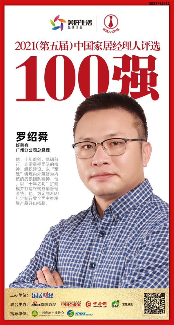 快讯:好莱客广州分公司总经理罗绍舜获“2021中国家居经理人100强”