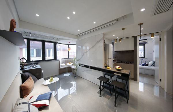 郭俊:那个项目其实是我作为主案设计师,和我的恩师史老师公司一起完成的,做这个空间更多的是在考验作为一个设计师的功底和对整个现场的把控。这个项目位于上海淮海路上的一个老建筑,一共是11平方。如果看过这个电视节目的可能知道它的层高是有一定高度的,整体是斜坡型的结构,由两个异形的空间合并在一起。设计的难点在于如何合理有效地去利用每一个空间,最终我们完成了两室两厅、一厨一个卫的布局,实际上就是我们是通过一些空间的合理利用,去满足业主的需求。