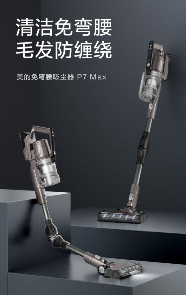美的P7 MAX是一款采用人体工程学设计的吸尘器,机身按照人体工学弯折,用户不用弯腰轻松清洁低矮空间,同时避免长时间握持造成手臂肌肉酸疼,灵活机身对中老年用户非常友好。